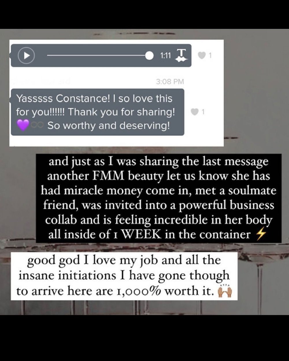 Not all and this is on purpose so that the container is able to guide all women. FMM is all about the deep embodiment of feminine wealth, magic, pleasure, and magnetism so that you can soar to new heights in all areas of life which is not dependent on your profession of choice! The vibe is big money on a collapsed timeline, a calm nervous system that allows you to receive more, psychic activation and power to more confidently lead your life, embodiment of your desires to receive them with ease, learning how to move through your bs quickly so it doesn’t stall your flow, and how to move energy to call your manifestations to you with speed. You master playing in the quantum.